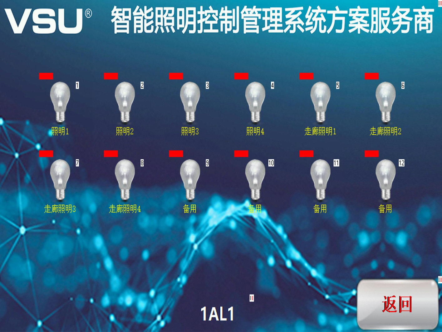 VSU為工廠提供定制照明方案,能夠最大程度改善工廠照明,提高用照明電效率,節(jié)能不必要的電腦浪費(fèi)。下圖為該項(xiàng)目的照明終端控制界面: