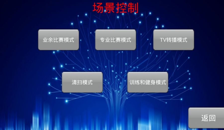 另外還可以直接通過面板切換專業(yè)比賽模式、業(yè)余比賽模式、TV轉播模式、清掃模式、訓練和健身模式、全開和全關模式等不同的燈光場景。(效果如下圖)
