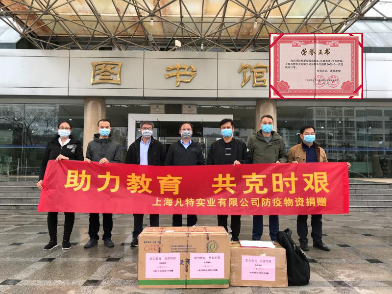 同年2月份,在全國防疫物資緊缺,假冒偽劣口罩泛濫之際,我司在了解到廣西師范大學(xué)的復(fù)學(xué)復(fù)工情況后,向廣西師范大學(xué)后勤保障服務(wù)無償捐贈(zèng)5000個(gè)醫(yī)用口罩等防疫物資,助力其開展復(fù)學(xué)復(fù)工及疫情防控工作。樹榜樣、重教育,學(xué)習(xí)前輩身上不怕苦難、盡職盡責(zé)、熱愛人民、熱愛祖國的寶貴品質(zhì),社會(huì)才會(huì)更好,生活才會(huì)更好,上海凡特愿做一個(gè)堅(jiān)實(shí)的后盾,與其共克時(shí)艱!
