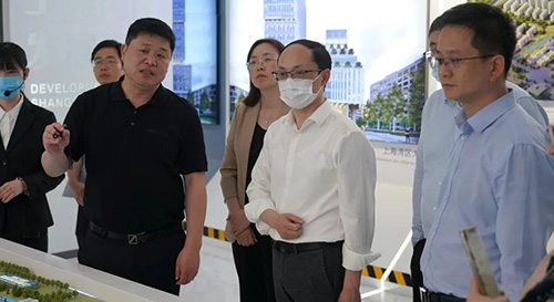 吳能武一行人首先參觀了上海灣區(qū)科創(chuàng)中心展廳,灣區(qū)科創(chuàng)公司負(fù)責(zé)人就科創(chuàng)中心的總體規(guī)劃、未來城市設(shè)計(jì)以及院校合作等板塊進(jìn)行了詳細(xì)介紹。
