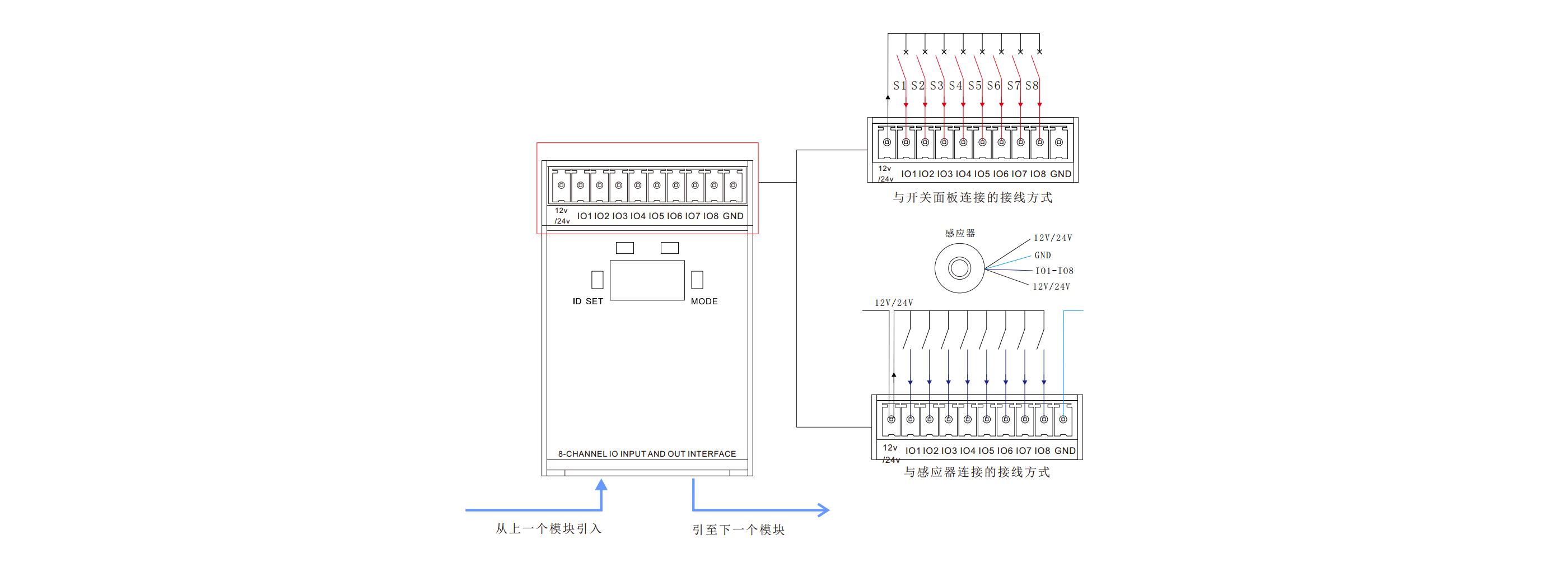 1.提供8路IO輸入接口,可接機(jī)械按鍵和門磁、人感等IO輸入信號,識別按鍵短按按下,短按松開或長按,長按松開嵌入總線;