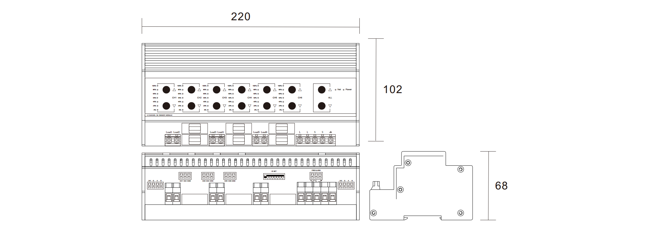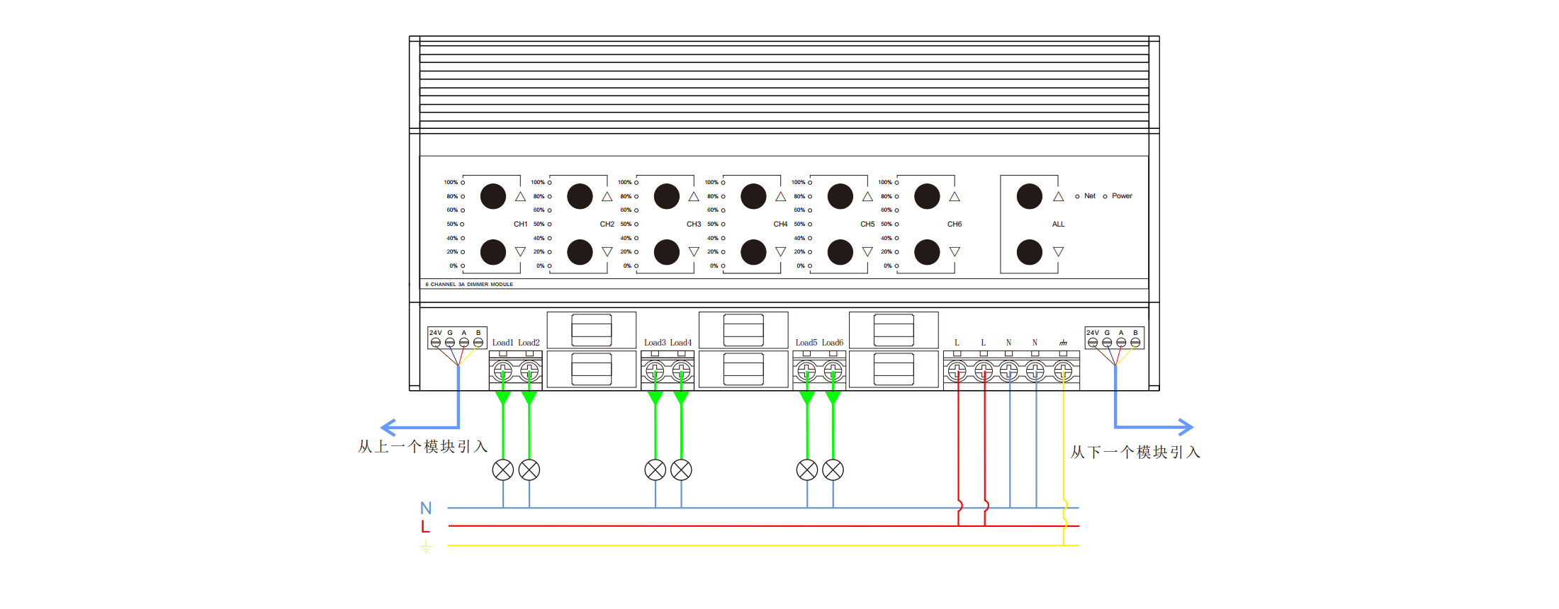 2,輸出回路:6路可控硅前沿調(diào)光;