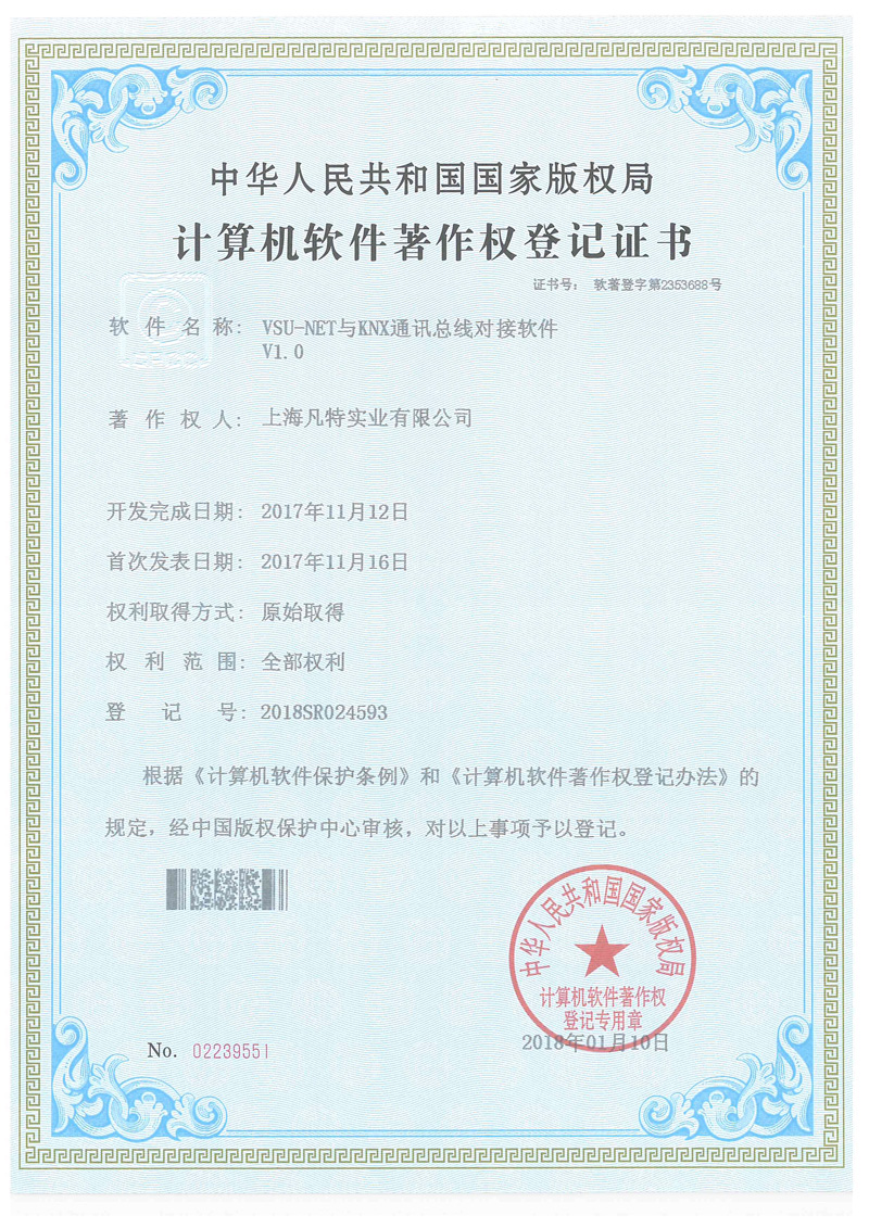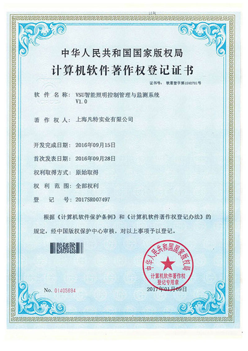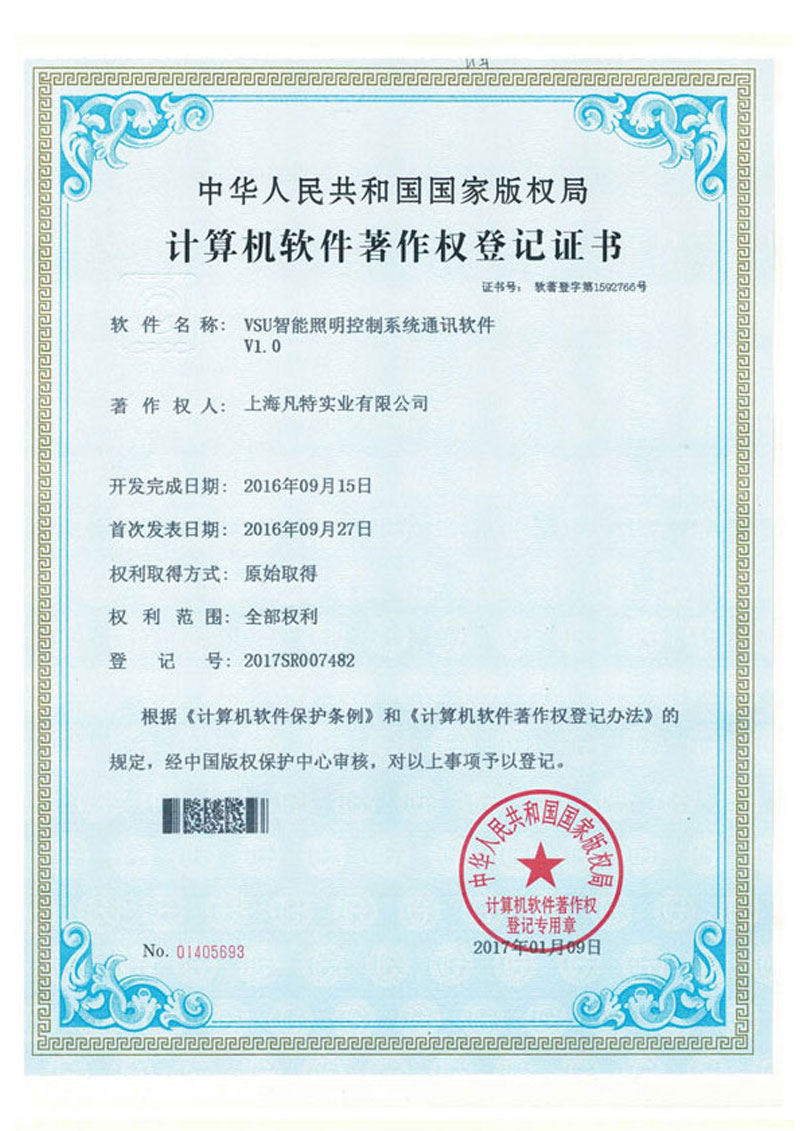 VSU智能照明有多項自主知識產(chǎn)品證書,所有產(chǎn)品都經(jīng)過國際CE認證,符合國際電工標準。
