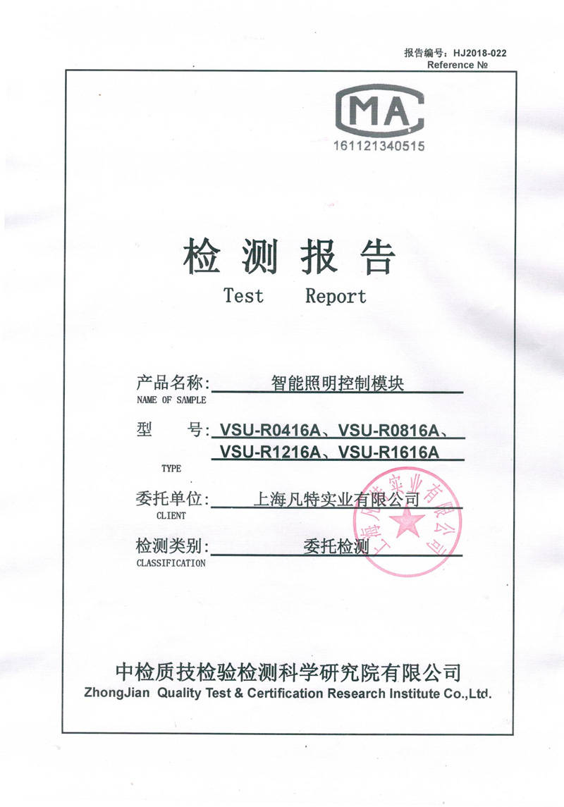 VSU智能照明控制模塊檢測(cè)報(bào)告1